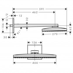 • shower head size: 460 x 270 mm