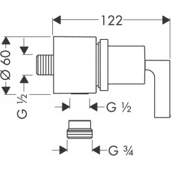 Wall outlet stop with non return valve, shut-off valve and lever handle