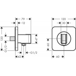 • hose nut: for shower hoses with conical nut on both sides